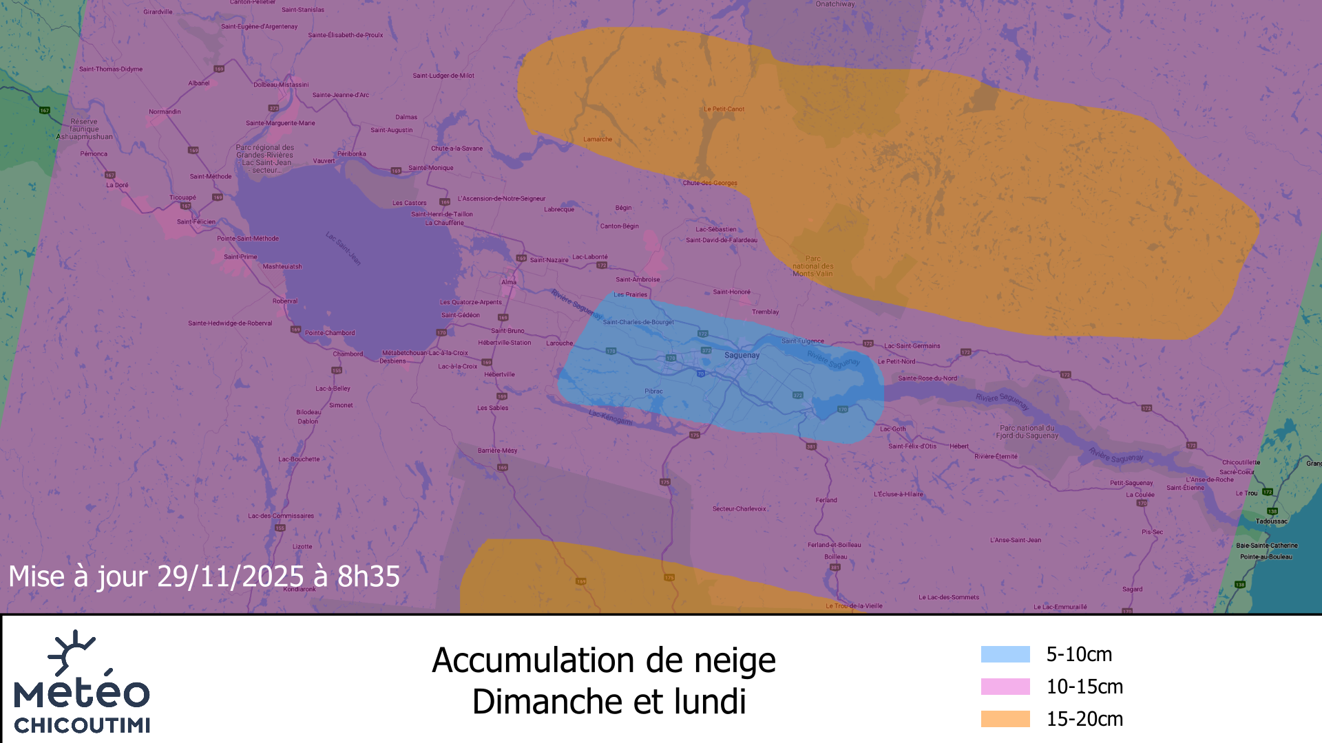 | Chicoutimi | Valinouet | Norvégien | L'Anse-St-Jean | Laterrière | La Chapelle | L'or Piste | Lac-Bouchette | |