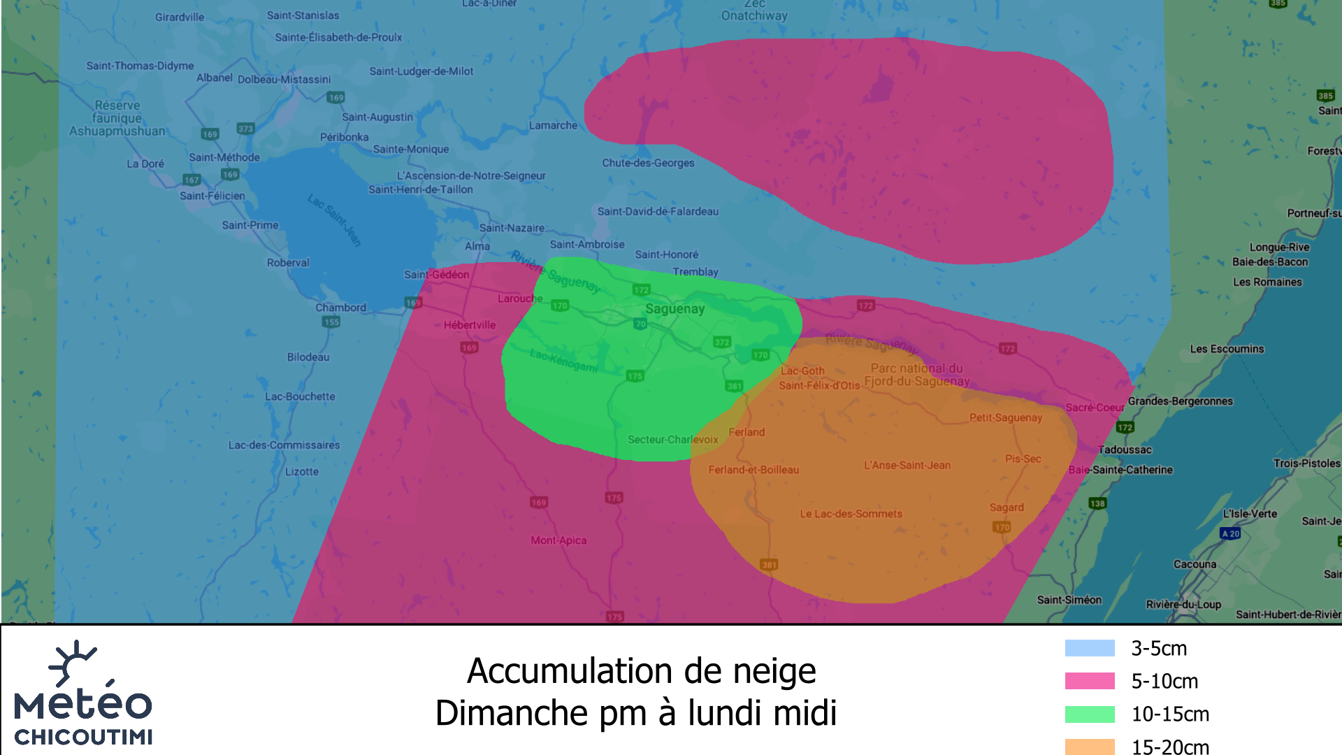 | Chicoutimi | Valinouet | Norvégien | L'Anse-St-Jean | Laterrière | La Chapelle | L'or Piste | Lac-Bouchette | |