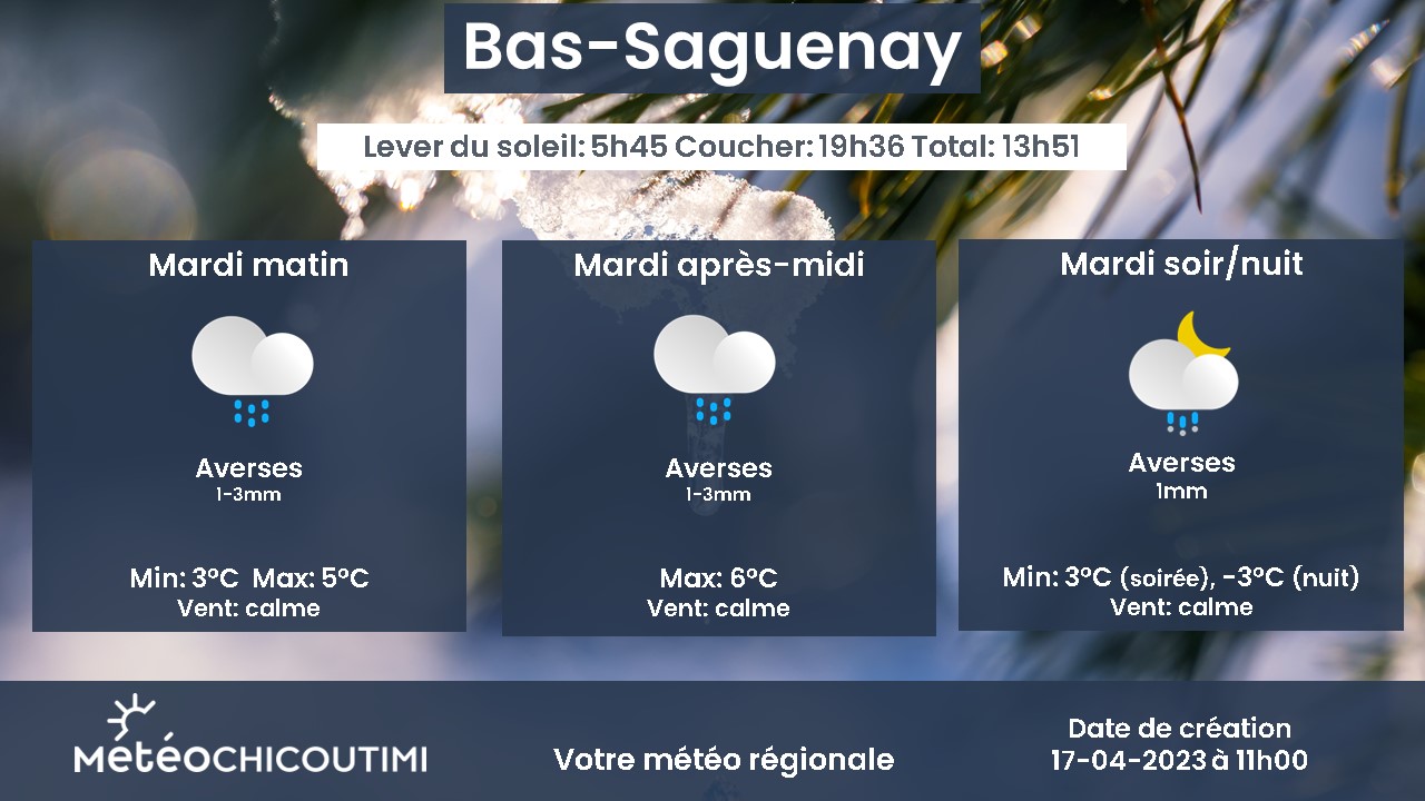 Prévision pour mardi 18 avril 2023