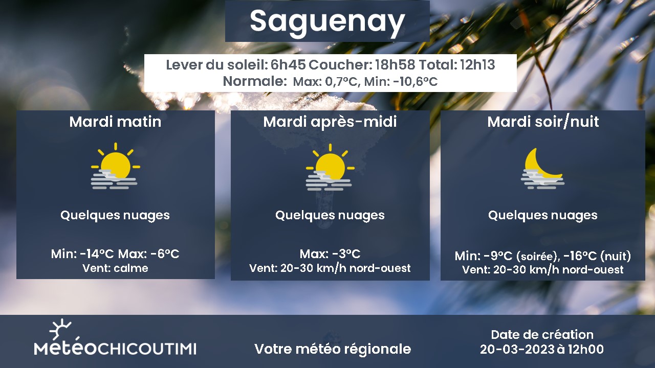 Prévision pour mardi 21 mars 2023