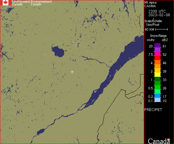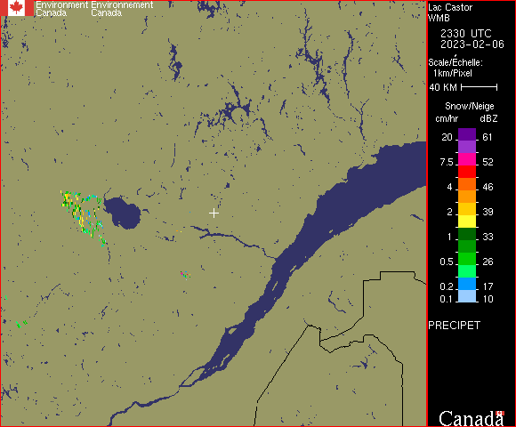 Les images sont maintenant disponibles aux 6 minutes contrairement aux 10 minutes comme le radar du lac Castor. De plus, nous n’avons plus de faux échos entre Roberval et Saint-Félicien ainsi qu’au-dessus du parc éolien dans la réserve faunique des Laurentides. Par contre, il y a un gros, mais… Selon ce que je possède comme information, les deux radars (Apica et Castor) vont fonctionner en simultané pendant environ 30 jours afin de s’assurer de la stabilité de l’équipement. Alors les faux échos seront encore visibles en mode composite que ce soit via l’application/site web d’Environnement Canada ou l’application de Météomédia et autre.